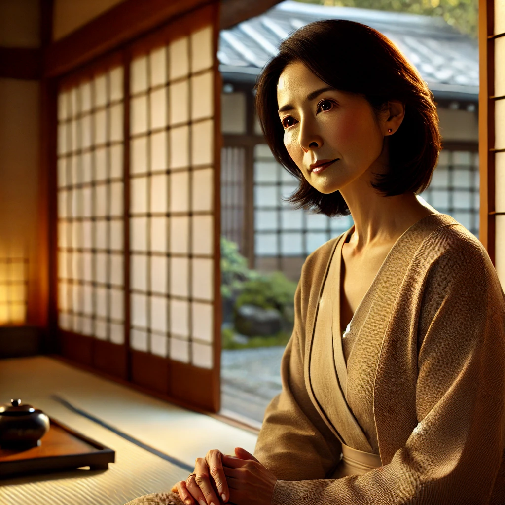 DALL·E 2025-07-16 14.38.22 – A calm and introspective Japanese woman in her late 40s to early 50s, with medium-length dark hair, dressed in a simple but elegant outfit, sitting qu 2025/7/16 ※本サイトのコンテンツには、商品プロモーションが含まれています。 スポンサードリンク